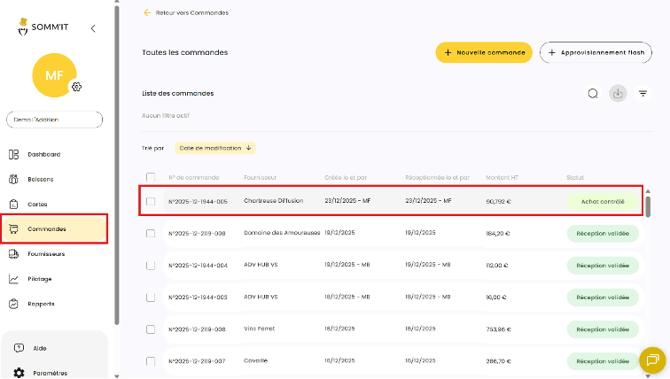 Pour cela, rendez-vous dans la liste de vos commandes et cliquez sur la commande que vous souhaitez réinitialiser.