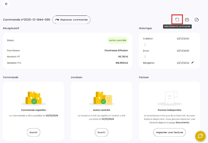 Vous retrouvez, en haut à droite, l’icône « Réinitialiser la commande ». Cliquez dessus.