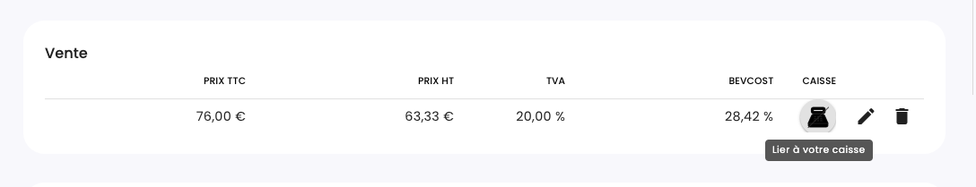 Depuis la fiche de la boisson, dans l’onglet vente, il me suffit de cliquer sur l’icône caisse barrée.