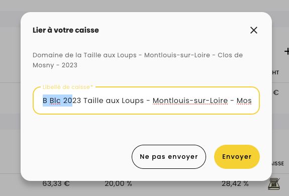 Je peux ensuite choisir l'intitulé de mon bouton de caisse et valider, la touche sera instantanément créé dans ma caisse et liée à la fiche Somm'it.